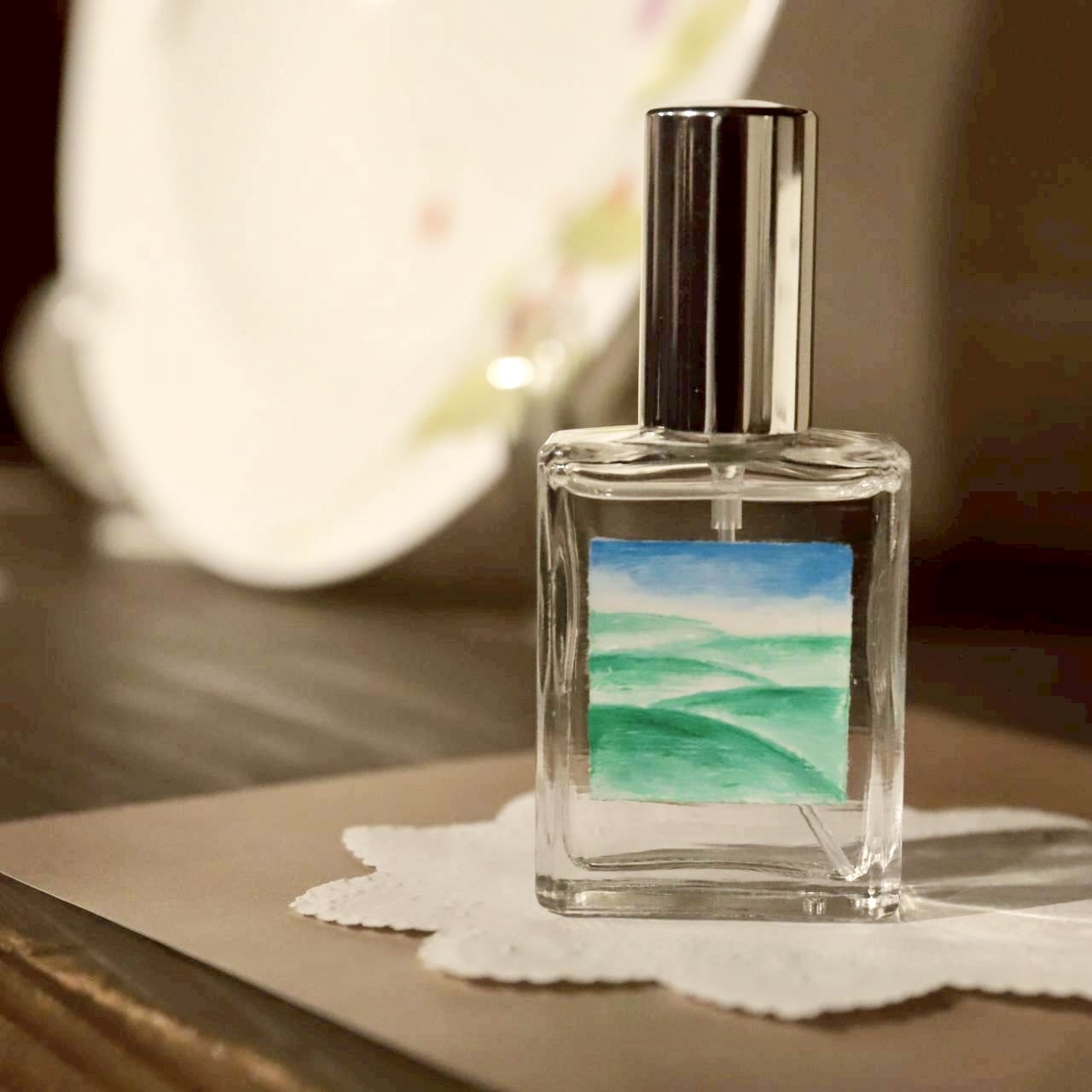 こんにちは。愛知県名古屋市のフレグランス(香水)メーカー、ジャパンスタイルフレグランスの大野智恵美です。なんだか7月から、慌ただしくて、すったもんだしながらたどり着いた、今年の〈視覚と嗅覚の連動〉ですが、昨日、無事、初日を迎えることができました。今回は、白磁の上絵付けの第一人者、安藤栄子さんにご一緒いただいています。描く画面の素材感や絵付け絵の具の質感も表現できれば、と思い、フレグランス作品の香調を、つややかな透明感でまとめました。今年は今年の挑戦!です。iPhoneから送信