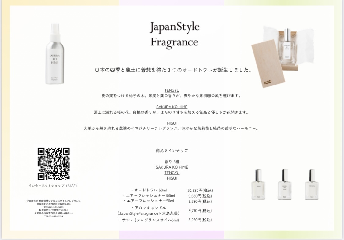 愛知県名古屋市のフレグランス(香水)メーカー、ジャパンスタイルフレグランスの大野智恵美です。