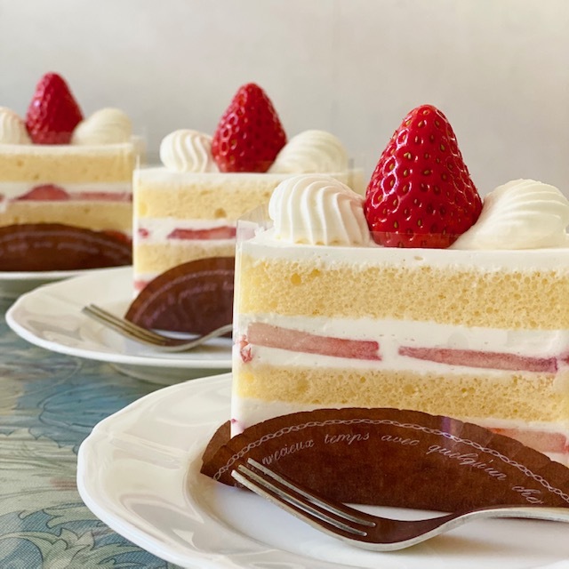 一つ前のブログに、「生涯最後のケーキを選ぶとしたら、イチゴショート」と書いたら、その日のレッスンに、イチゴショートを持って来てくださった方が!