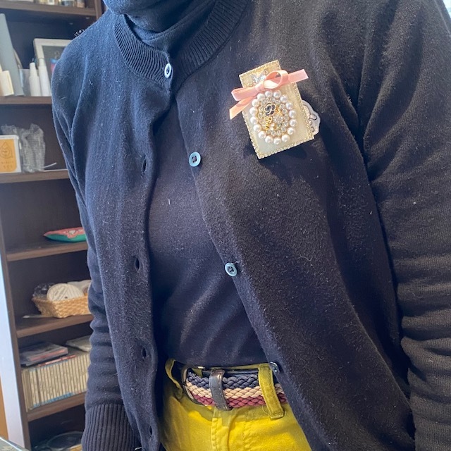 先のブログでもアップしたキラキラ香水瓶ブローチ。