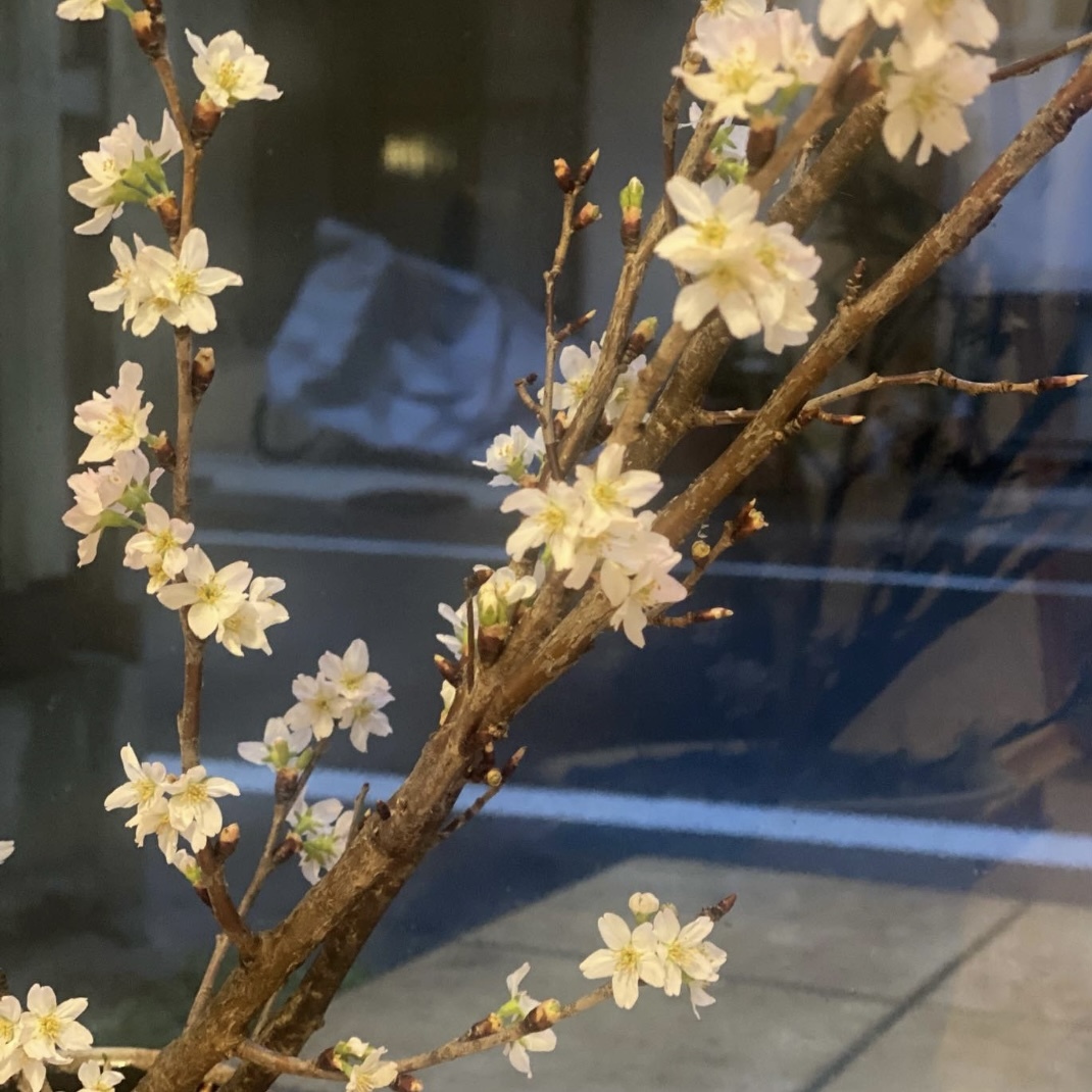 1月の末に買ってきて、お教室の入り口の花瓶にさしていた枝が、もうこんなに咲きました。